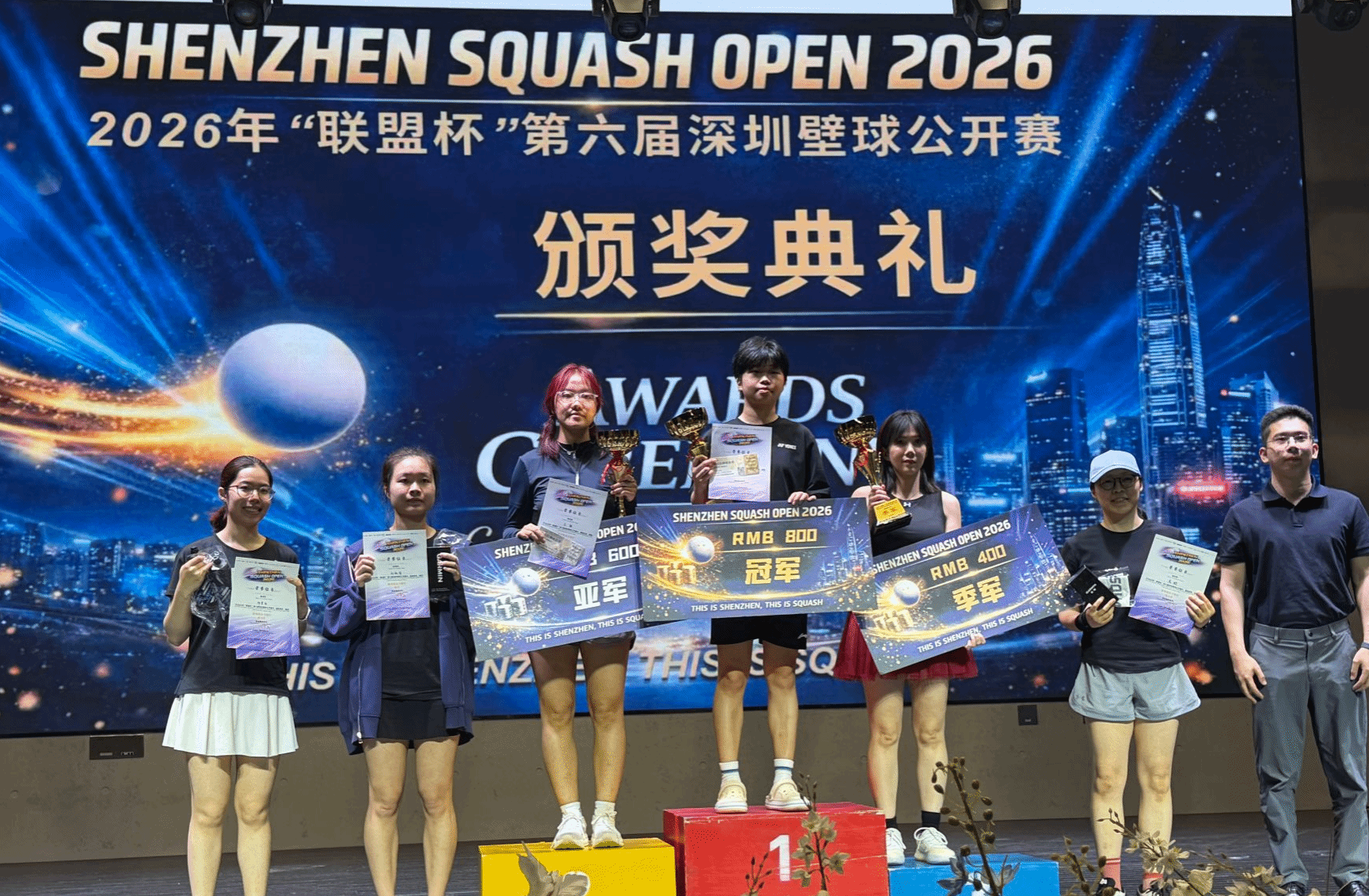 The Shenzhen University Squash Team achieved outstanding results in the 6th Shenzhen Squash Open Tournament of the 2026 “League Cup”