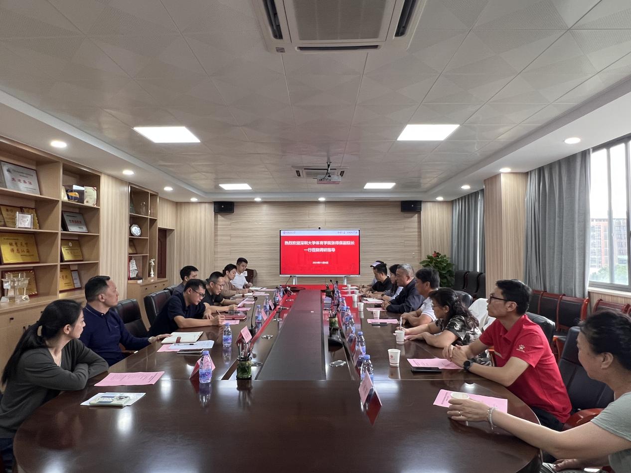 Leaders and faculty members from Fujian Normal University's College of Physical Education and Science, including Dean Xu Wenxin, Deputy Party Secretary Luo Yi, Vice Dean Zhong Xiaobo, Vice Dean Wei Deyang, Director of the Department of Sports Training Zhou Tong, Secretary of the Youth League Committee Ji Zengzhang, Director of the Subject Platform Office Yang Jingyun, and Manager of the Teaching and Research Management Office Chen Yuting, attended the exchange meeting.Representatives from Shenzhen University's School of Physical Education, Vice Dean Zhang Debao, Director of the Department of Sports Training Deng Wanjin, Deputy Director of the Department of Sports Training Zeng Hongfa, Director of the Track and Swimming Teaching and Research Office Huang Kunlun, Director of the Big Ball Teaching and Research Office Cui Jiabao, Director of Student Affairs Office Chen Yan, Deputy Director of Student Affairs Office Lei Yu, and Volleyball Coach Zhang Yanjing participated in the exchange activities. In-depth discussions were held on topics such as sports team recruitment, competition and management, project application, student affairs, and scheduling.