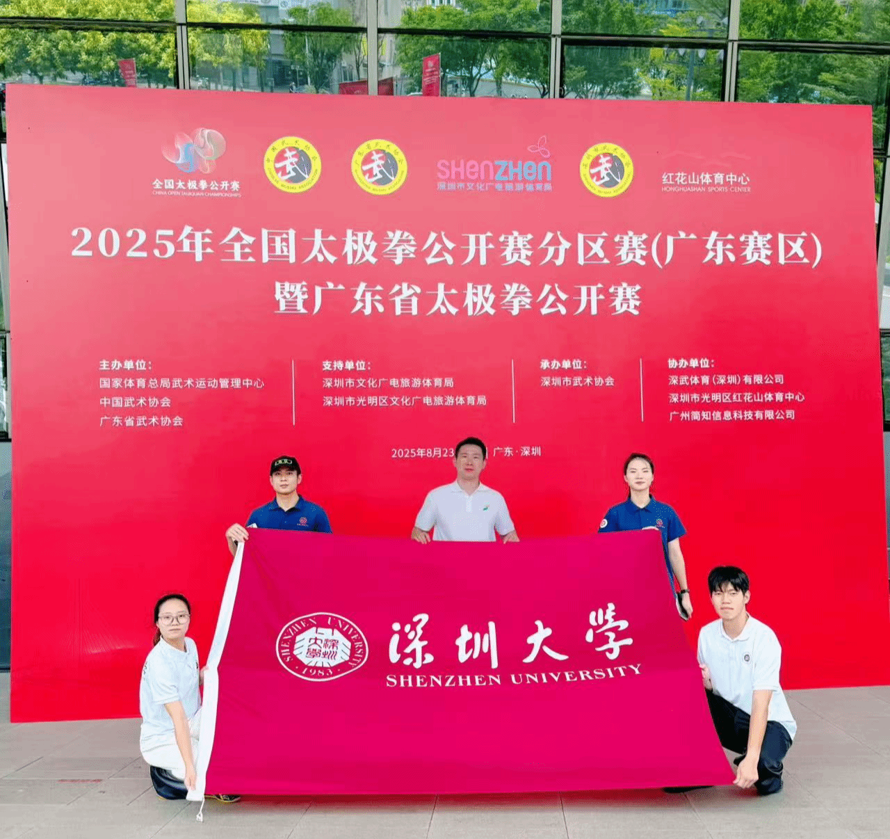 The Shenzhen University Wushu Team was invited to participate in the competition. Four team members won a total of five gold, two silver, and one bronze medals: Prunus salicina Yidan won gold in Women's Compulsory Changquan and Women's Compulsory Broadsword, Themeda villosa Yixuan won gold in Women's Tai Chi and silver in Women's Traditional Northern Style Weapon, Yang Tianzhi won gold in Men's Compulsory Changquan and silver in Men's Optional Broadsword, and Huang Jiaxing won gold in Compulsory Tai Chi and bronze in Men's Tai Chi Short Weapon. Yang Tianzhi was awarded the title of "Outstanding Athlete," and the Shenzhen University Wushu Team received the "Outstanding Team" award.