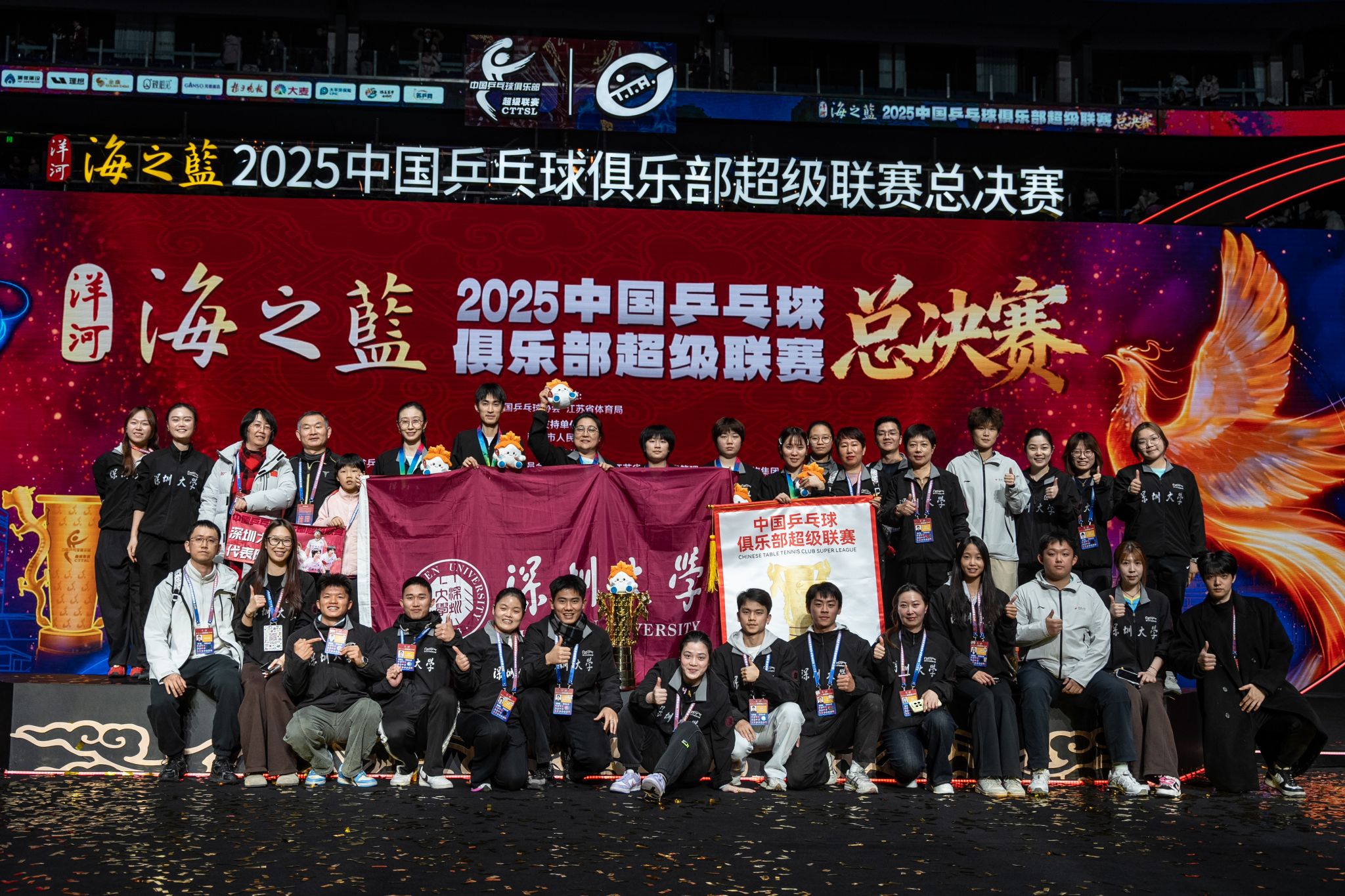 Since its establishment and debut in the Chinese Table Tennis Super League in 2016, the Shenzhen University team has never ceased its climb over the past nine years. This championship trophy belongs not only to the athletes who fought valiantly on the court, the dedicated coaching staff, and the support team behind the scenes, but also to every faculty member, student, alumnus, partner, and fan who has stood by us. It is the finest reward for our unwavering perseverance—and, at the same time, a brand-new starting point for the journey ahead.