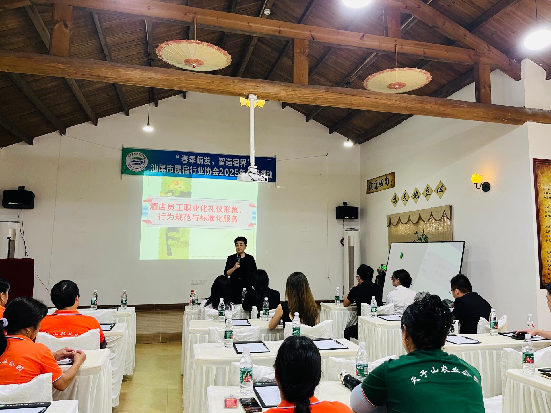 为了加强党建与业务深度融合,提升深汕特别合作区农文旅从业人员的专业能力,受深圳市深汕特别合作区农业农村和海洋渔业局的邀请,在帮扶干部汪江队长的精心组织和安排下,2025年4月24日至25日,深圳大学体育学院高尔夫与休闲旅游系党支部书记刘艳红副教授在深汕特别合作区天子山农业园开展送教上门、公益培训。主要培训内容包括旅游从业人员职业形象塑造、行为规范与标准化服务、旅游从业一线员工职业心态及情绪管理、投诉预防及处理技能、情商管理与沟通技巧、A级景区的打造。此次培训吸引了来自水底山温泉庄园等5家农文旅企业的50余名从业人员参加,有效提升后续应对“五一”旅游高峰的接待能力,提供了及时且周到的技术指导服务,受到了广泛的社会好评。