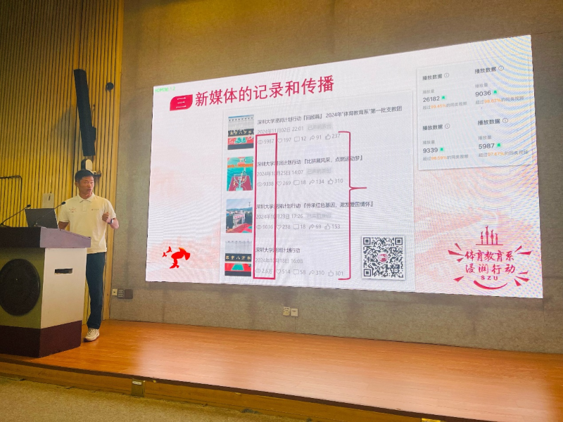 接着,体育学院党委书记李智军代表体育学院领导班子,向所有参与“体育浸润行动计划”的同学们表示崇高的敬意,向受到表彰的同学们表示热烈的祝贺,向辛勤耕耘在教育一线的老师们表示衷心的感谢。希望学生们能够珍惜这次难得的经历,将所学所得转化为今后学习和工作的动力,继续发扬“追求卓越、勇攀高峰”的体育精神,为实现个人价值和社会价值而不懈努力。同时,也希望老师们能够继续发扬爱岗敬业、无私奉献的精神,为学生的成长成才提供更加优质的教育服务。最后,李智军书记强调未来要进一步加强与基层学校的联系与合作,建立长期可持续的交流与帮扶模式,共同推动中小学体育教育教学水平、学生健康素质等提高,推动深圳大学体育学院人才培养质量迈向新台阶。