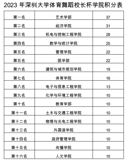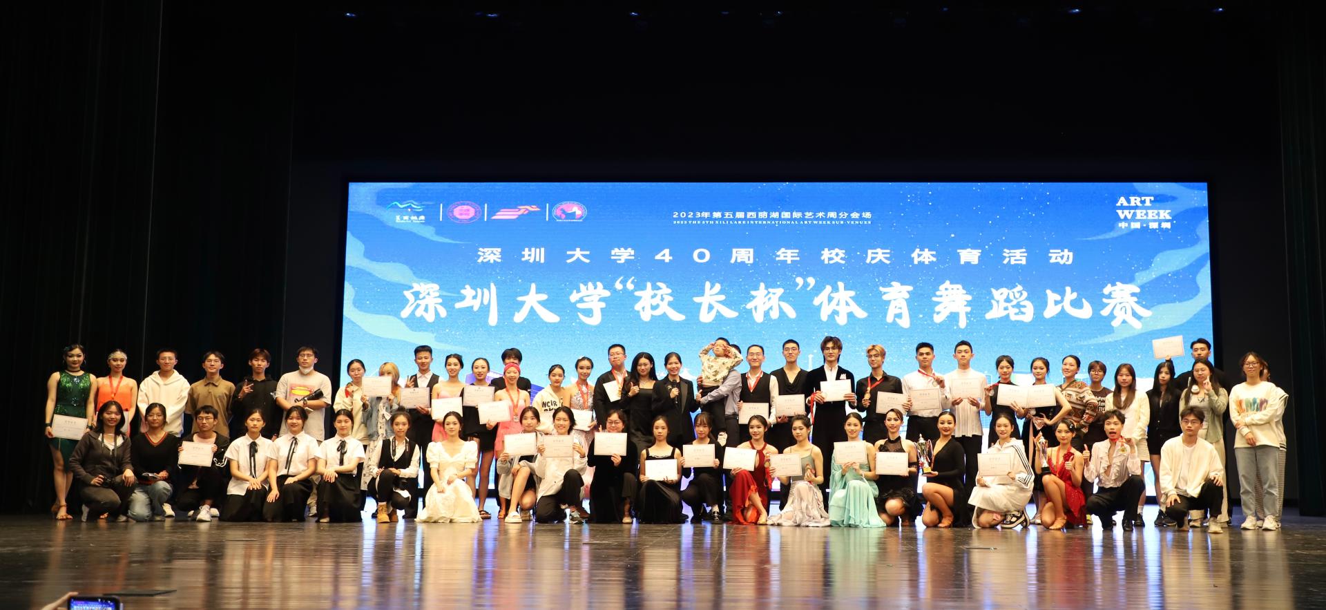 2023年12月3日,深圳大学40周年校庆体育活动之第四届“校长杯”体育舞蹈比赛在深圳大学丽湖校区文汇礼堂圆满落幕。本次比赛由深圳大学体育学院主办,深圳大学体育舞蹈俱乐部协办。