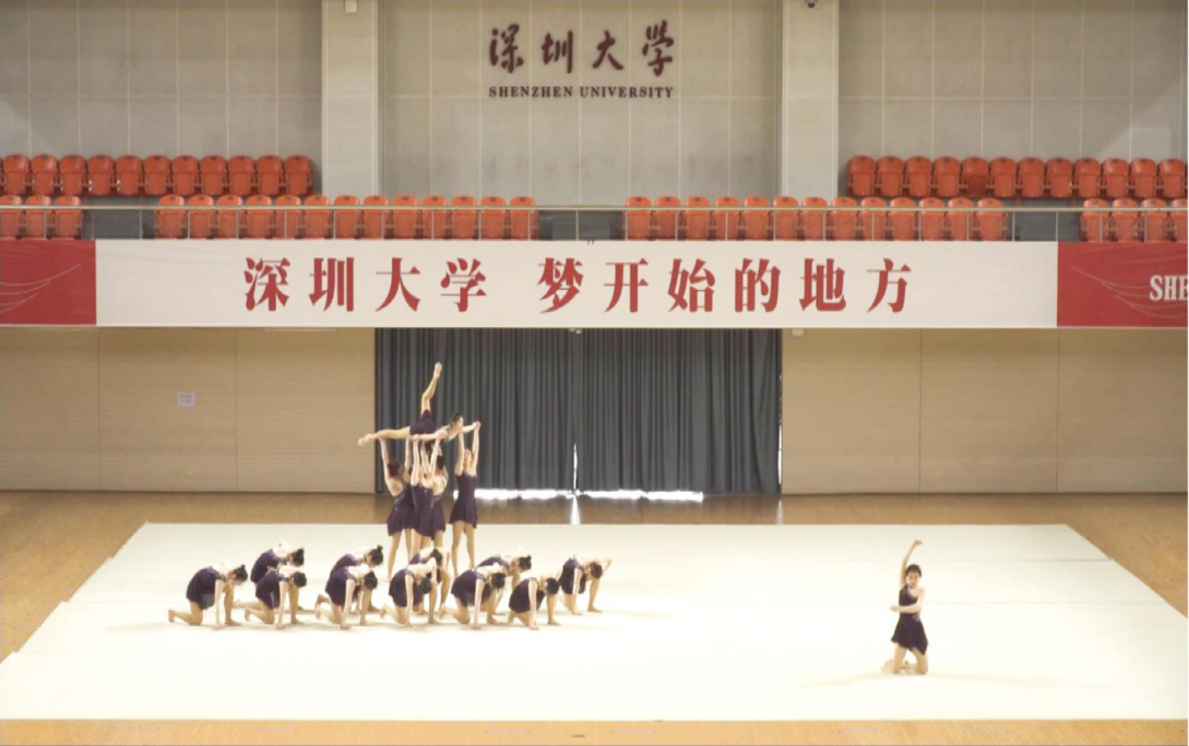 我校艺术体操队共18名队员参加此次比赛。她们完美的表现和超高的难度完成,以高出第二名84分的大比分优势,为深圳大学代表队摘得本届比赛集体项目冠军!