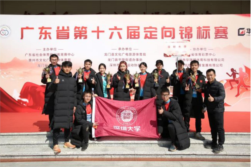 深圳大学定向越野代表队参加了本次赛事18岁和21岁两个年龄组的项目,共获得7金、3银、2铜,以及分别获得18岁和21岁两个组别的团体总分第一名。