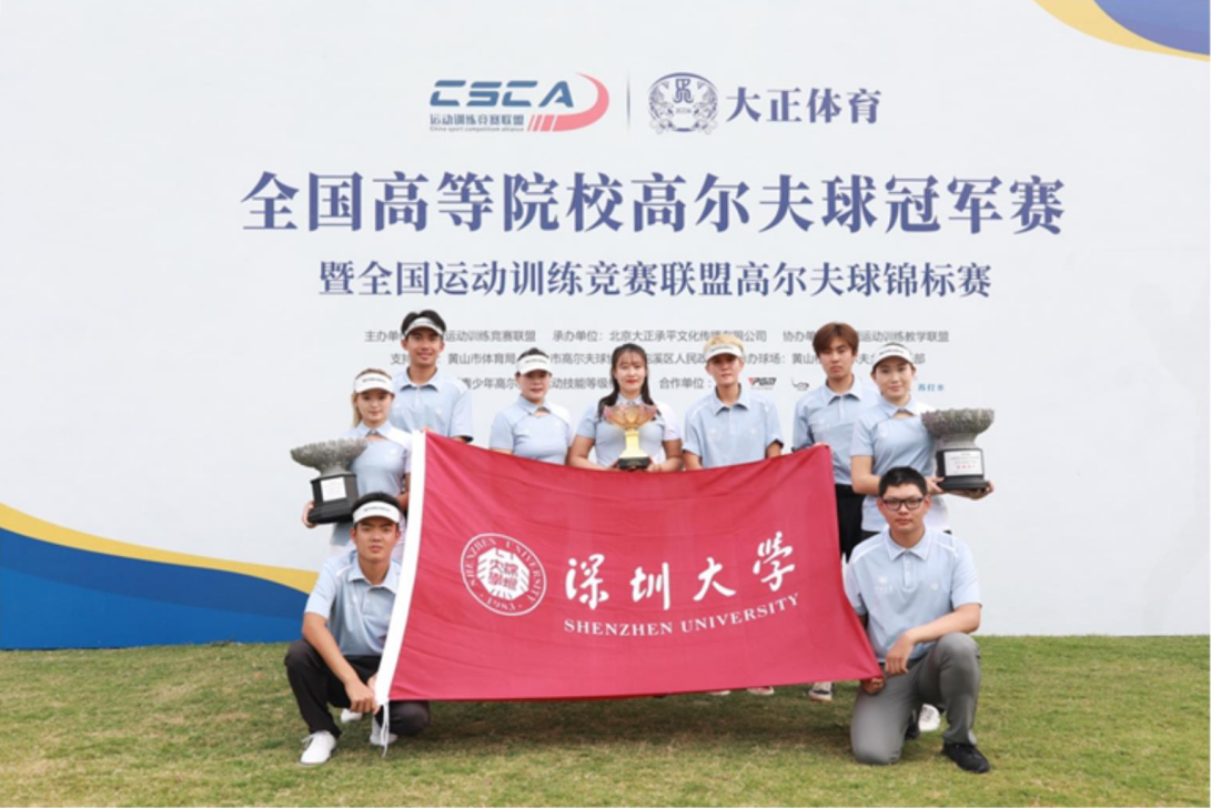 2022年9月23--29日,第四届全国高等院校高尔夫冠军赛在黄山松柏高尔夫俱乐部举行,全国28所院校近200名运动员参与此项赛事。按照竞赛规程,我校高尔夫球队选拔8名学生参赛,主教练蔡汶霏老师带队。比赛设男女子个人、男女子团体及混合团体前三名,共5个奖项。