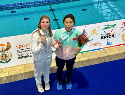 深圳大学体育学院运动训练专业学生郑玉佳作为中国代表团其中一员,参加了本届金砖五国运动会游泳比赛,在赛场拼尽全力为国争光,并荣获4银1铜。