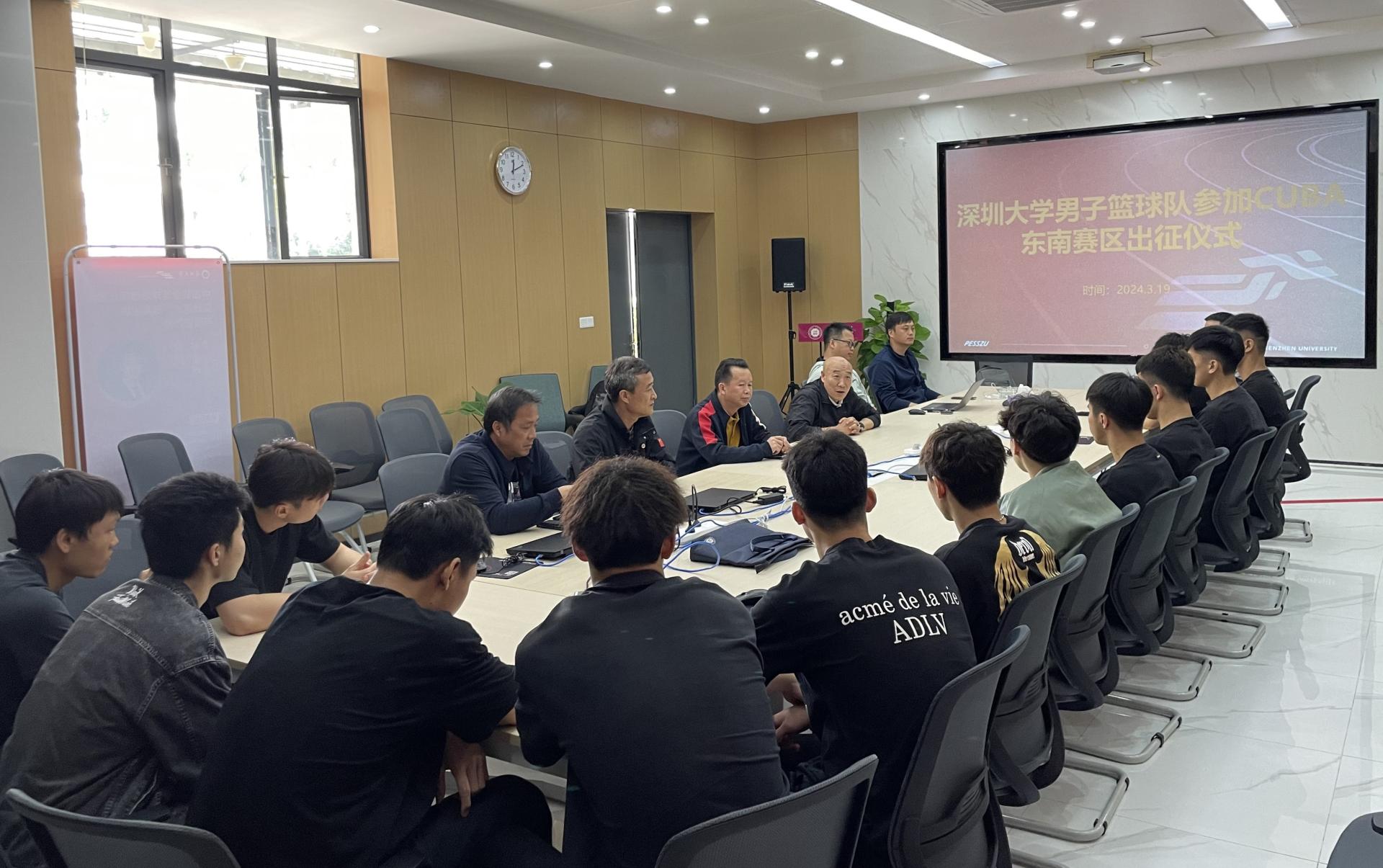 2024年3月19日中午,体育学院在元平体育馆会议室为深圳大学即将参加中国大学生CUBA东南赛区一级联赛的男子篮球队举行了隆重的出征动员仪式。