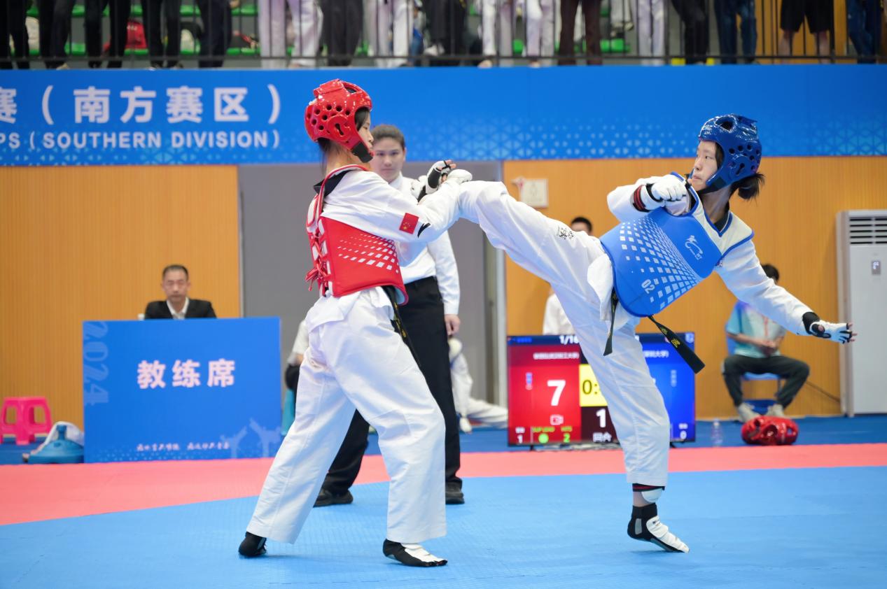中国学生体育艺术联合会主办的2024年第18届中国大学跆拳道锦标赛(南方赛区)于5月21-24日在湖南长沙明德望城学校体育馆举行。深圳大学跆拳道代表队共派出5名同学参加了本次赛事。经过四天的艰苦奋战,我校跆拳道代表队夺得3枚金牌、2个第四名和1个第八名的好成绩,其中4名同学获得了8月份参加全国总决赛的资格。