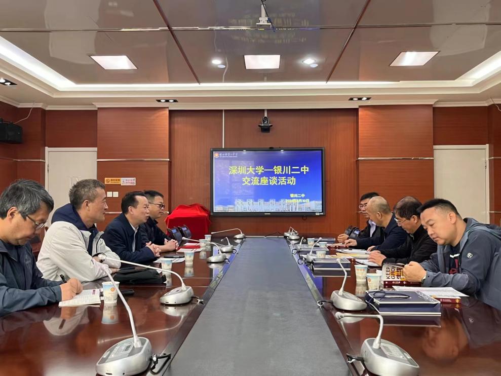 4月30日上午,宣讲组来到了银川二中。在与银川二中交流座谈活动中,李智军书记首先向学校赠送了二中学子“2023年深圳大学优秀学生”的获奖喜报,随后向学校介绍了深圳大学的基本情况,以及深圳大学的招生政策,解答了学校关于招生录取方面的疑问。陈少兵校长和苗阳教务主任在介绍银川二中时,详细阐述了学校的基础概况、坚守的办学理念以及丰富的历史沿革。陈校长谈到,银川二中始终致力于为学生提供全方位、高质量的教育服务。同时也表达了与深圳大学加强交流与合作的热切愿望。他们相信,通过与深圳大学的合作,共同探索新的教育方法和理念,为宁夏地区的教育事业发展注入新的活力。期待未来双方能够携手共进,为培养更多的优秀人才而共同努力。