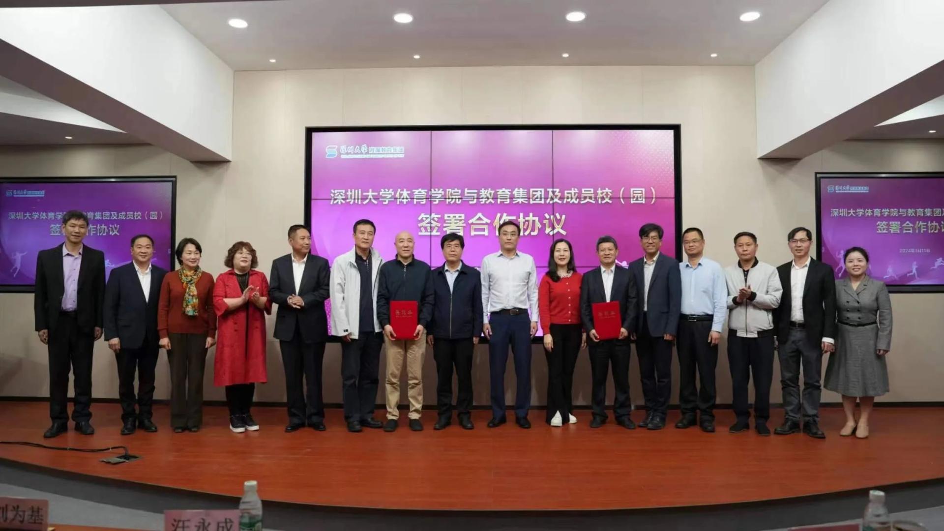 在活动现场,深圳大学体育学院院长刘建教授与深圳大学附属教育集团总校长刘为基签署了合作协议。此外,深大体院还与集团旗下的成员学校和幼儿园签订了相关合作协议。