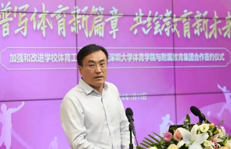 在签约仪式上,深圳市教育局副局长邱成瑜高度认可了深圳大学体育学院和深大附属教育集团的合作。他指出,深圳大学体育学院与深大附属教育集团充分利用综合性大学的学科人才优势,探索高等教育与基础教育的融合发展,形成了“大学+中学”的协同育人新模式,成为深圳学校体育和高校附属教育的杰出代表,为其他学校提供了有益的借鉴。