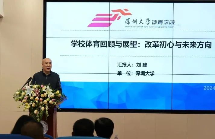 签约仪式后,深圳大学体育学院院长刘建以“学校体育回顾与展望:改革初心与未来方向”为题作了精彩的主旨报告。刘建院长在报告中首先回顾了过去二十年中学校体育改革的关键事件。他从学校体育改革的初衷、面临的挑战(“扎心”问题)以及改进这些问题的建议等五个方面,对学校体育改革的途径和方案进行了深入分析。刘建院长强调,深圳大学体育学院将利用其学科优势,主动向附属集团学校提供深度服务,包括“内涵性服务”、“对策性服务”和“发展性服务”,以此履行其在高等教育领域的职责。