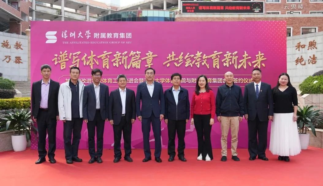 1月11日,深圳大学附属教育集团加强和改进学校体育工作推进会暨深圳大学体育学院与附属教育集团合作签约仪式在深大附中初中部顺利举行。在未来,深圳大学体育学院计划在师资建设、课程开发、人才培养以及实训基地建设等多个领域与深圳大学附属教育集团展开深度合作,助力体育专业人才培养质量和集团中小学学校体育质量的提升。