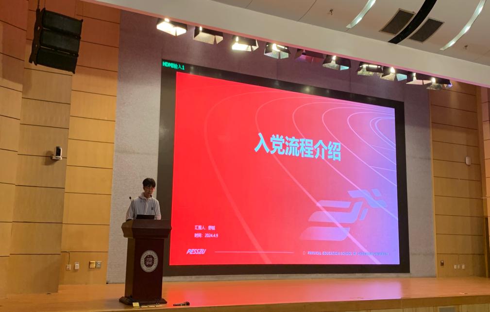 为深入学习贯彻习近平新时代中国特色社会主义思想,引导体育学院学生正积极向党组织靠拢,2024年4月9日中午,深圳大学体育学院在汇星楼一号报告厅,召开体育学院学生党支部大会。体育学院学生党全体党员、预备党员、发展对象、入党积极分子、入党申请人参加会议。会议由学生党支部副书记舒铖主持。