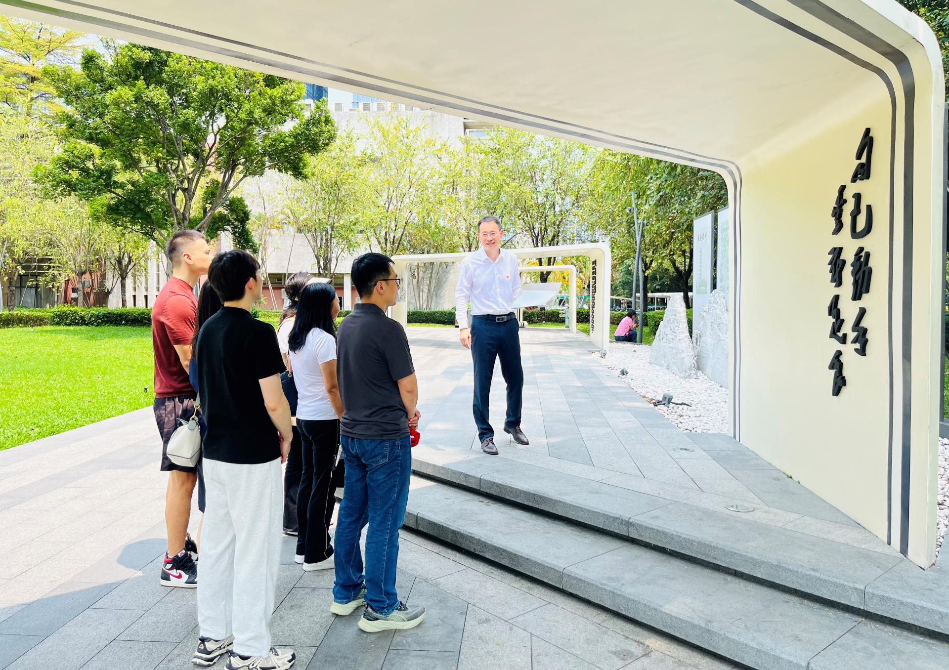 “不忘初心 牢记使命”。为了激发党员同志的爱国热情与敬业精神,2024年4月11日,深圳大学体育学院高尔夫与休闲旅游系党支部成员前往南山党建公园开展了一次以“学党史、知党情、跟党走”为主题的党史学习教育。南山党建公园以党的发展历史为线索,以党的各时期精神为脉络,通过雕塑、石碑、标语、栈桥等多种形式,展示了各时期党的精神内涵,是深圳首个以党建为主题的公园,党员们提前查阅和分享了大量文献资料,制定了预案,进行了踩线活动,做足了充分的准备工作。