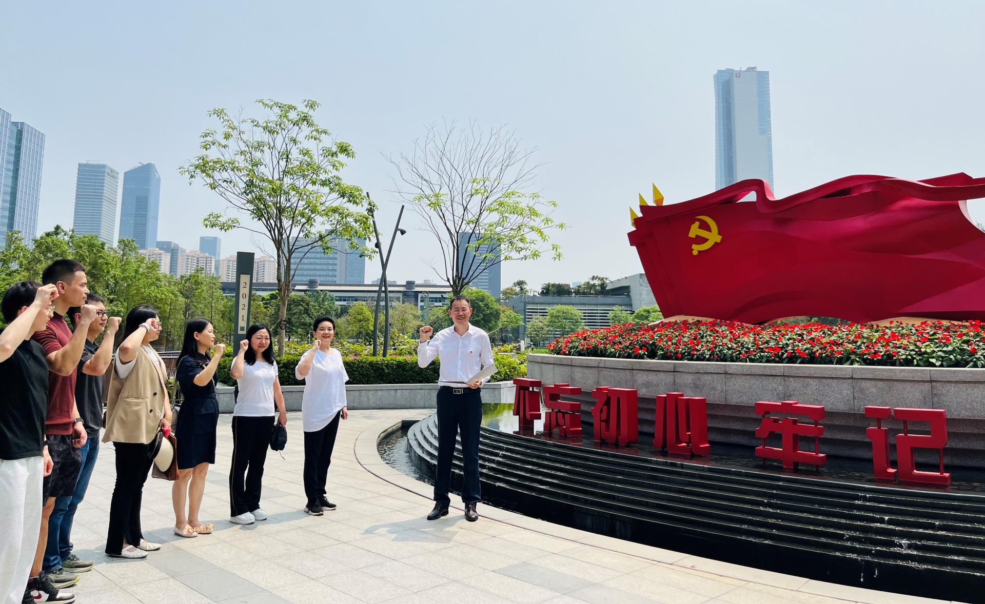党员们还在象征着“特区精神”的深圳特区拓荒牛的雕塑前驻足学习,探讨敢闯、敢冒、敢试、敢为天下先的改革精神,以及奋发有为、只争朝夕的创业精神。活动的最后,党员们在党旗雕塑和“不忘初心 牢记使命”四个大字前,庄重地重温了入党誓词仪式。