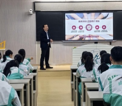 紧接着深圳大学宣讲组来到了宁夏九中。在这里,李智军书记为高三的学子们带来了一场生动活泼的招生宣讲和志愿填报讲座。他用通俗易懂的语言向学生们介绍了深圳大学的办学特色和优势专业,同时也分享了一些填报志愿的技巧和注意事项。讲座现场氛围热烈,学生们纷纷表示受益匪浅。