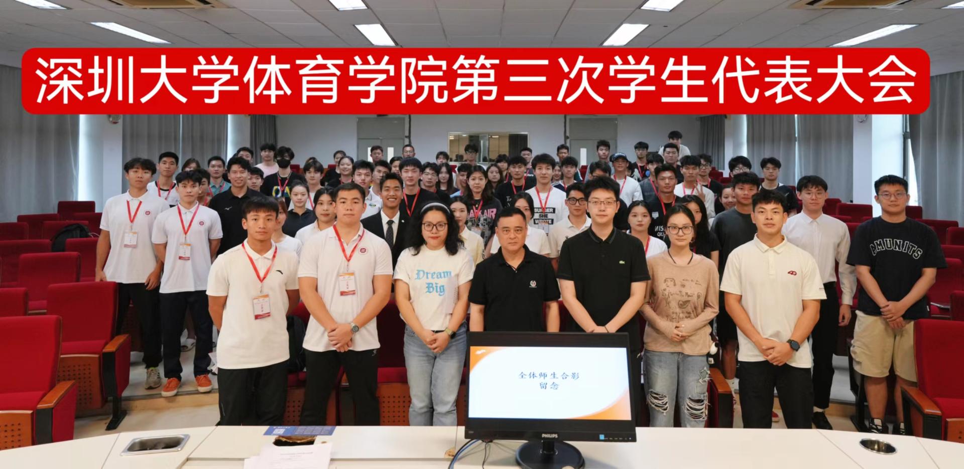 2024年5月8日,体育学院在汇德楼A204召开了深圳大学体育学院第三届学生代表大会。党委副书记陈方明、学工办主任陈琰、学工办副主任雷瑜、团委书记舒铖老师出席会议,体育学院各专业学生正式代表42人及列席代表20人等参加此次会议。会议由学生骨干唐晓主持。