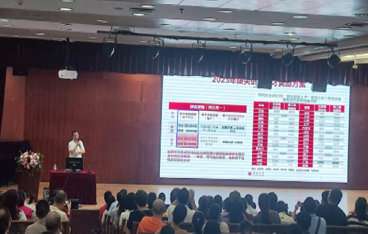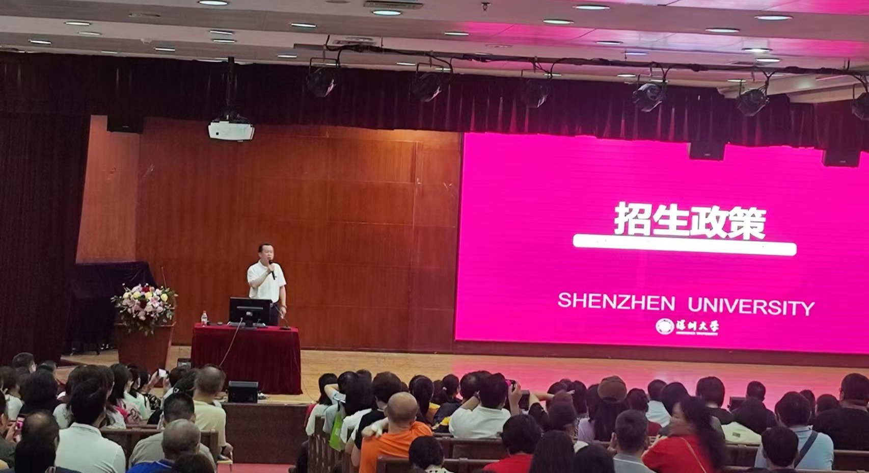 在宣讲的高潮部分,李智军书记对深圳大学进行了全面而深入的解析,充分展现了深圳大学的独特魅力。详细介绍深圳大学的办学特色、学科专业设置、学校资源优势、学校招生政策以及历年录取分数线,加深了深圳市第三高级中学学生和家长对深圳大学的了解程度,为后续吸引优秀的第三高级中学学子积极报考深圳大学打好前期基础。