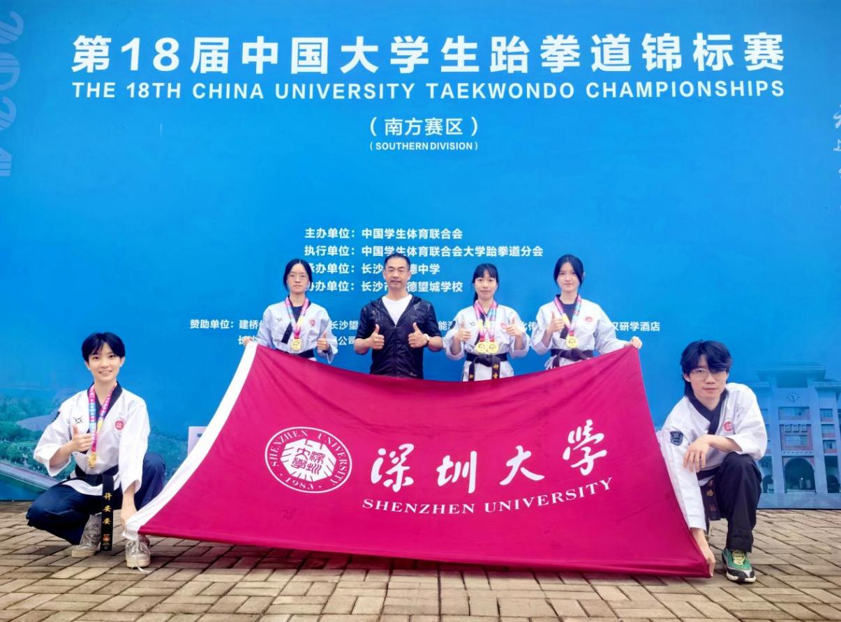 中国学生体育艺术联合会主办的2024年第18届中国大学跆拳道锦标赛(南方赛区)于5月21-24日在湖南长沙明德望城学校体育馆举行。深圳大学跆拳道代表队共派出5名同学参加了本次赛事。经过四天的艰苦奋战,我校跆拳道代表队夺得3枚金牌、2个第四名和1个第八名的好成绩,其中4名同学获得了8月份参加全国总决赛的资格。