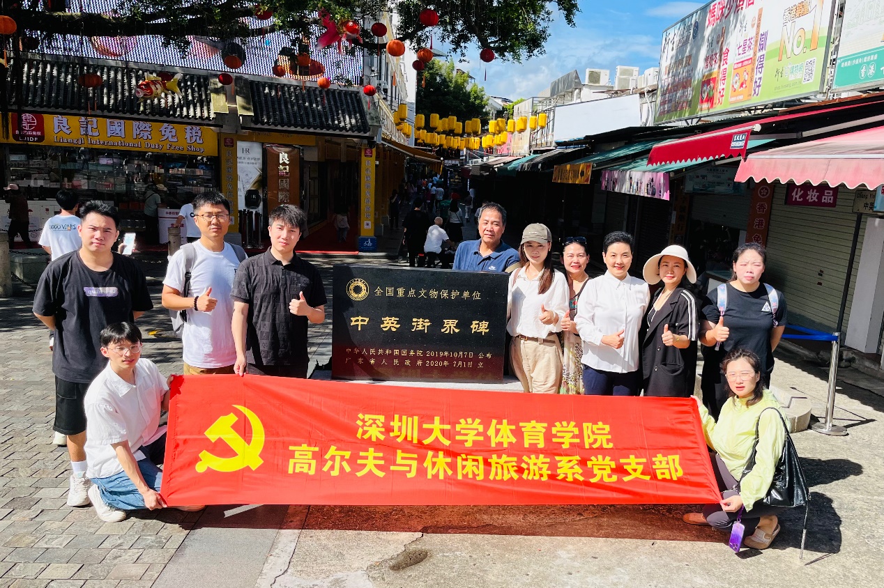 为迎接建党103周年,深化党支部建设,丰富党支部主题日活动形式,加强支部党员同志的归属感和责任感,深圳大学体育学院机关党支部、高尔夫与休闲旅游系党支部开展支部共建活动,组织了一次具有深刻意义的主题“迎七一”党日活动——“中英街党建之旅:铭记历史·警钟长鸣”。此次活动以实地探访历史遗址、开展国情教育为主要形式,旨在深入了解我党先辈抗战的历史,学习党的历史脉络,强化爱国主义教育,同时结合党史党纪的学习,进一步提高党员们的思想觉悟和党性修养,并与中英街管理局、历史博物馆展开交流座谈,共同探讨党建、旅游、体育等领域的战略合作前景,以期达成更广泛、更深入的合作关系。