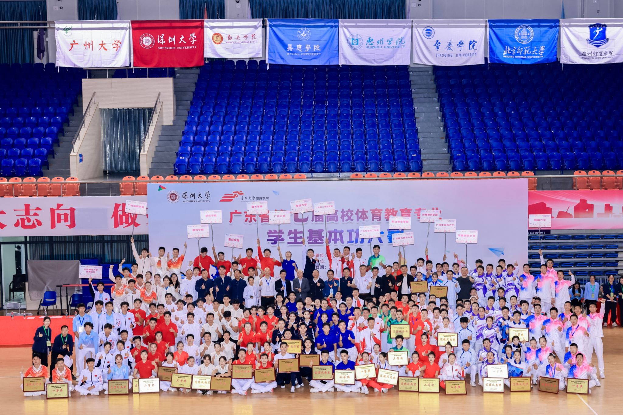 广东省第七届高校体育教育专业学生基本功大赛仲裁、广东省教育研究院肖建忠教授宣布比赛成绩:深圳大学、广州体育学院、华南师范大学、广东第二师范学院、暨南大学、韶关学院荣膺大赛团体总分一等奖;岭南师范学院、广州大学、韩山师范学院、广州中医药大学、肇庆学院荣获团体总分二等奖;嘉应学院、北京师范大学珠海校区、惠州学院、广东石油化工学院、广东技术师范大学获得团体总分三等奖。本次大赛,学子共192人次获得个人奖项,其中一等奖65人、二等奖66人、三等奖61人,110位指导教师荣获“优秀指导教师”称号;16个参赛单位共同获得“体育道德风尚奖”