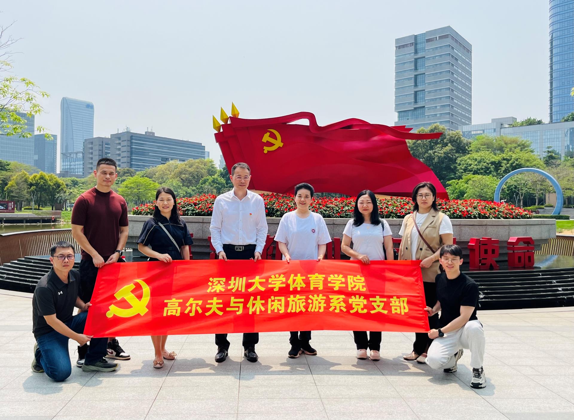 “不忘初心 牢记使命”。为了激发党员同志的爱国热情与敬业精神,2024年4月11日,深圳大学体育学院高尔夫与休闲旅游系党支部成员前往南山党建公园开展了一次以“学党史、知党情、跟党走”为主题的党史学习教育。南山党建公园以党的发展历史为线索,以党的各时期精神为脉络,通过雕塑、石碑、标语、栈桥等多种形式,展示了各时期党的精神内涵,是深圳首个以党建为主题的公园,党员们提前查阅和分享了大量文献资料,制定了预案,进行了踩线活动,做足了充分的准备工作。