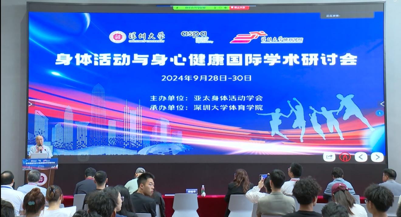 2024年9月28至30日,由亚太身体活动学会(Asia-Pacific Society for Physical Activity, ASPA)主办,深圳大学体育学院承办的“身体活动与身心健康国际学术研讨会”在深圳大学(粤海校区)校友广场多功能报告厅成功举办。本次研讨会聚焦“身体活动与身心健康”这一主题,邀请了七位国内外知名专家学者(澳大利亚塔斯马尼亚大学Verity Cleland教授、香港浸会大学段艳平教授、澳大利亚迪肯大学Jo Salmon教授、上海体育大学周成林教授、北京大学甘怡群教授、扬州大学颜军教授、深圳大学陈琦教授),进行了精彩的学术研讨报告。河北体育学院马国义教授、苏州大学王国祥教授以及深圳大学体育学院党委书记李智军、院长刘建、副书记陈方明和副院长张得保等作为特邀嘉宾出席。本次研讨会采用线上线下相结合的形式,共吸引了来自全球12个国家和地区,包括加拿大、德国、芬兰、韩国、印度、中国香港等,以及中国内地15个省市的300余名专家学者齐聚一堂,共襄盛会。