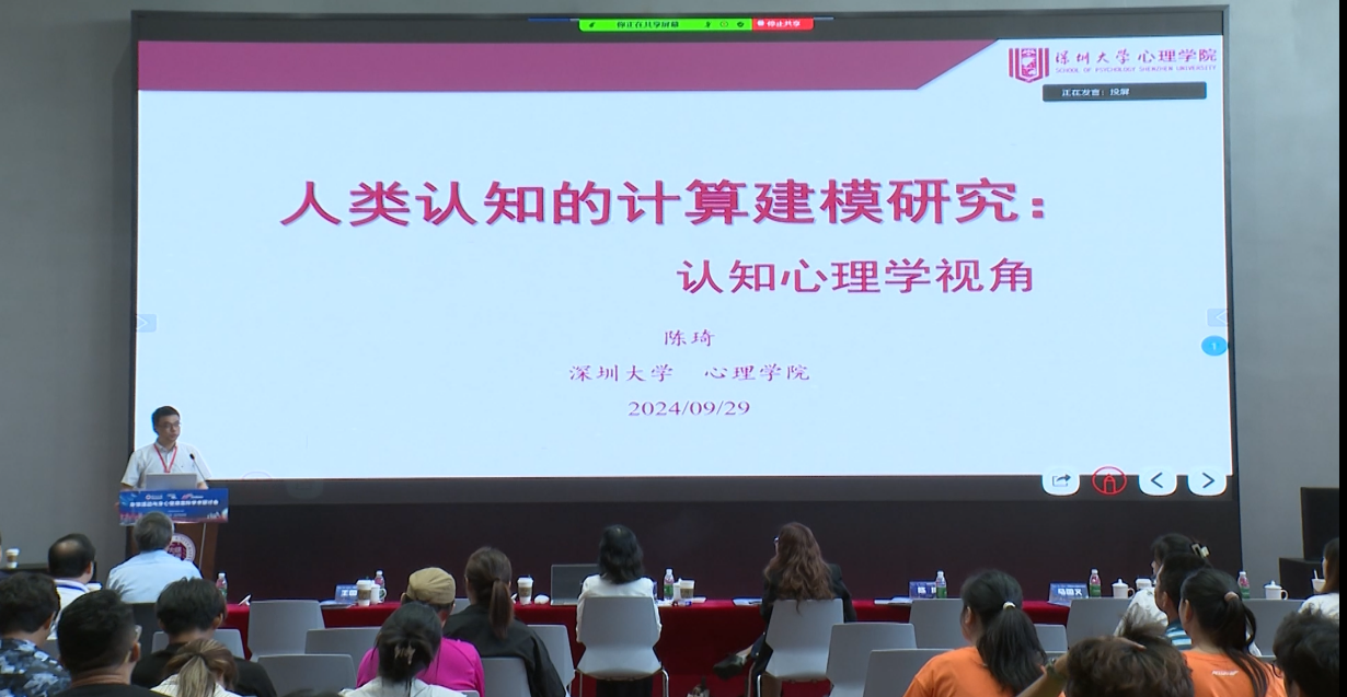 下午的最后一场报告由深圳大学心理学院院长、特聘教授、博士生导师陈琦教授带来。他以“人类认知的计算建模研究:认知心理学的视角”为主题,从认知心理学家的视角,深入探讨了计算建模在理解人类复杂思维和认知过程中的重要作用。陈教授介绍了强化学习、深度学习和贝叶斯模型等建模框架在人类适应性行为、决策以及无意识视觉信息处理等方面的应用,并阐释了其背后的神经机制。陈教授的报告展现了计算建模在辅助心理学理论探索、揭示人类认知规律方面的独特优势,为该领域未来的研究与实践开拓了新思路和新途径。