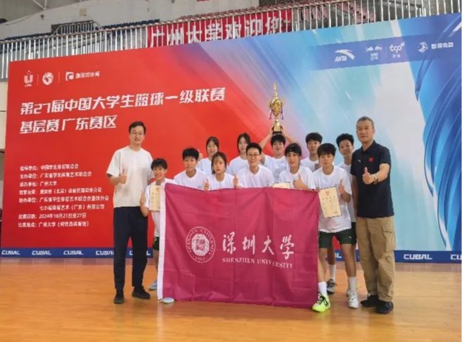 10月21-27日,第27届中国大学生篮球一级联赛(广东赛区)基层赛在广州大学何世杰体育馆拉下帷幕,深圳大学高水平男、女篮球队战绩辉煌,刚组队三个月的女子篮球队,以平均每场领先对方22分的不败战绩杀入决赛,获得广东赛区亚军,女篮教练李玢慧老师获得“广东省优秀教练员”荣誉称号!