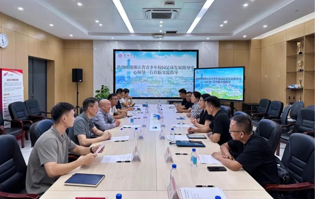 发展校园足球是一项系统工程,为探索大、中、小学融合发展路径,2024年10月15日,在深圳大学元平体育馆会议室,深圳大学体育学院院长刘建、副院长王东、体育教育系主任赵刚、党政综合办公室主任吴杰清、大球教研室副主任翟宗鹏、足球专业教师周春娟等,与来自浙江省学校体育协会的常务副秘书长姜丽及陈平,以及浙江省青少年校园足球发展指导中心的常务副主任惠悲荷等一行,共同举办了一场旨在促进双方合作与交流的重要会议。