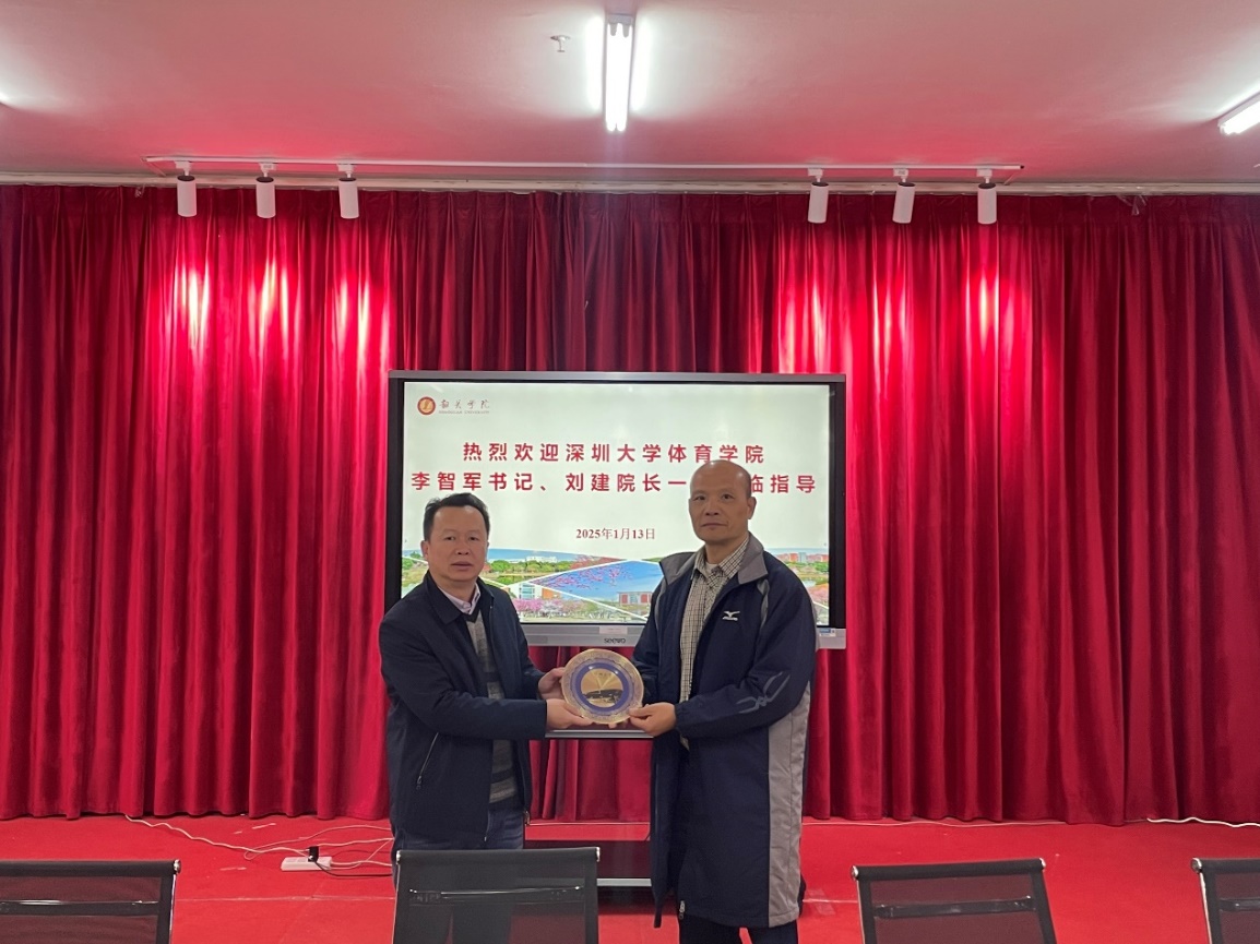 聚焦高等教育改革核心,搭建学院经验分享平台,2025年1月13日上午,深圳大学体育学院党委书记李智军、院长刘建率领代表团赴韶关学院体育学院进行调研和交流。