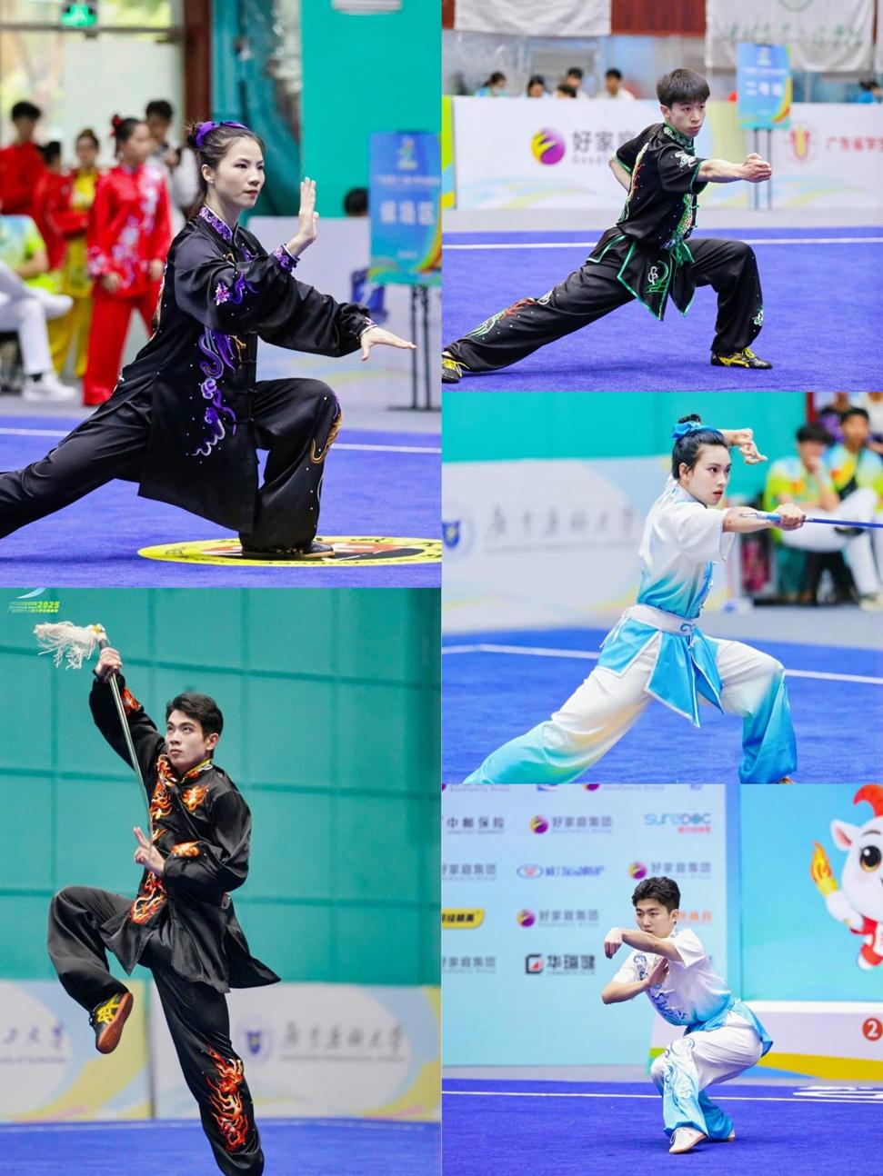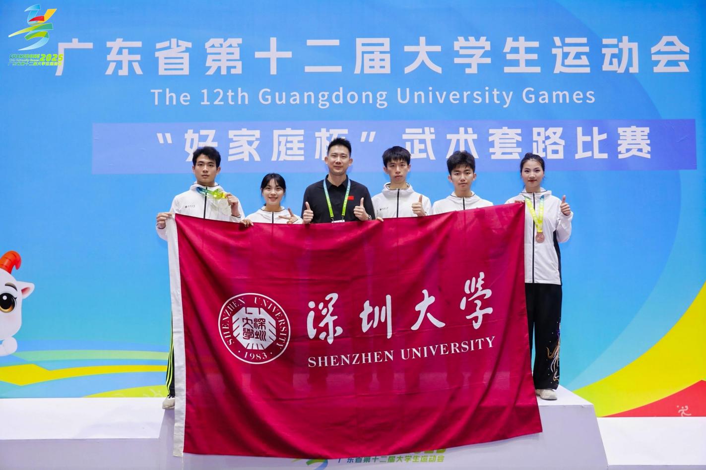 2025年5月13日到18日,广东省第十二届大学生运动会武术套路项目决赛在暨南大学(石牌校区)举办。深圳大学体育学院武术队在主教练张易老师的带领下分别参加了乙A组与甲组的比赛。在与中山大学、华南师范大学、暨南大学、广州体育学院、广东体育职业技术学院、广州中医药大学等多所高校武术健儿的同场竞技中,取得了两银一铜以及多个前八名以内的好成绩。
